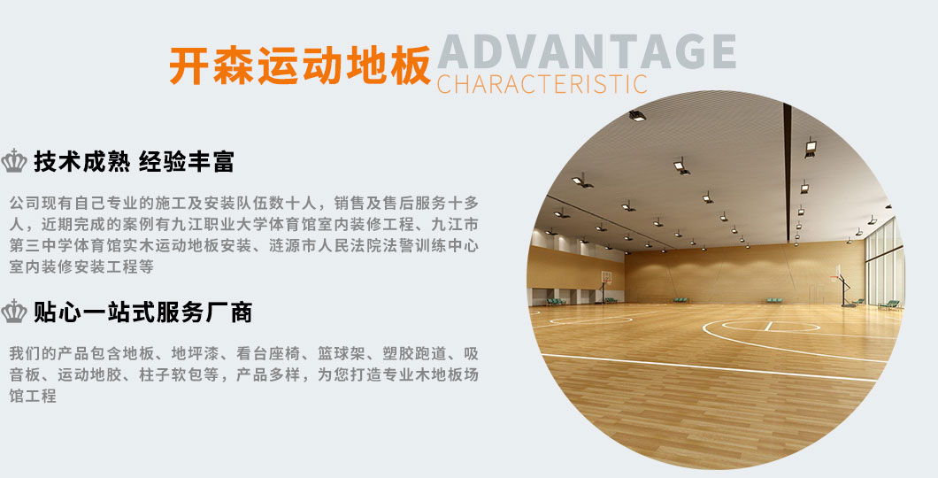九江開森地板有限公司位于美麗的江西省九江市。地板原材料采自于吉林,黑龍江等長白山地區(qū)自家承包林場的優(yōu)質(zhì)木料,主,輔龍骨采用美國進(jìn)口花旗松為原料。開森地板擁有雄厚的科技和研發(fā)實力,匯集了一批優(yōu)異工程師和專業(yè)的安裝團隊,引進(jìn)的進(jìn)口地板安裝設(shè)備。本公司對外承攬大、中、小體育場館的運動木地板安裝工程。做到質(zhì)量保證、價格合理。在行業(yè)內(nèi)擁有較高的知名度,實力迎合市場!
